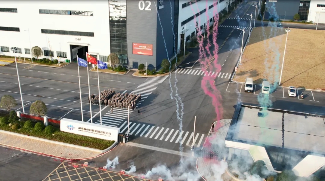 鑫政科技集團總部、湘陰產業園、桃江產業園三地共慶開工大吉。晨曦中,國旗冉冉升起,獵獵飄揚。鑫政員工整齊列隊,肅穆莊重,在宏偉莊嚴的國歌聲中,向五星紅旗、集團司旗行注目禮。