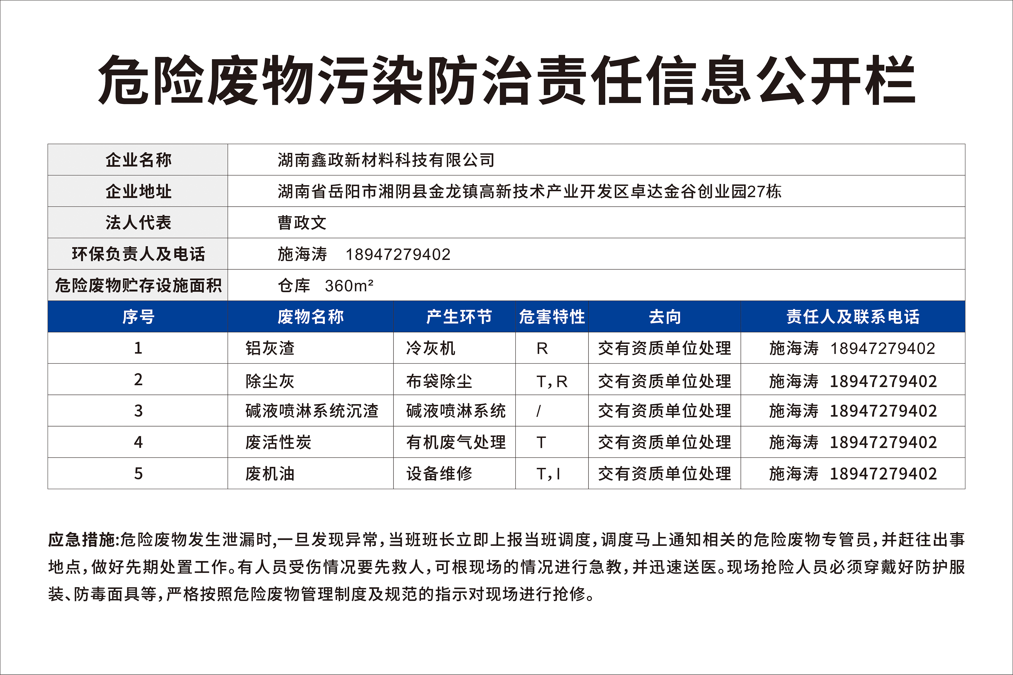 根據《中華人民共和國固體廢物污染環境防治法》的要求,產生固體廢物的單位,應當依法及時公開固體廢物污染環境信息,主動接受社會監督。結合我公司實際情況,現將2023年危險廢物污染環境防治信息公開如下:
