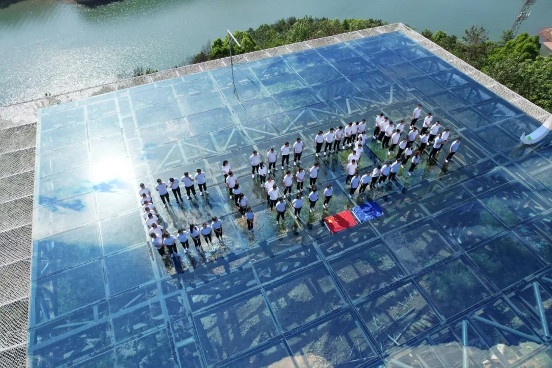 緊張激烈的競技后,是一次回歸自然的輕旅行。鑫政團隊途徑天空玻璃廊橋,在空中游道游覽,經過關云橋,藤橋抵達森林樂園天空之鏡。徜徉綠水青山之中,感受群山環抱、碧水如玉、峰巒秀美、綠蔭匝地之美,享受忙碌工作之余的偶爾休憩,體驗人與自然的和諧共生。